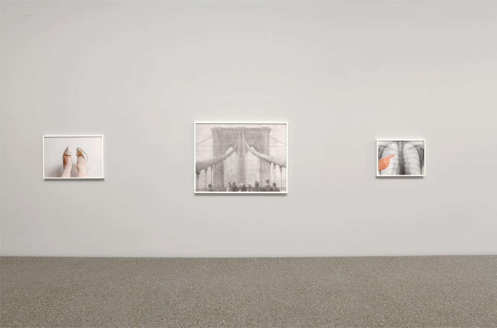 In a parallel effort to translate the multivalent existence of photographic imagery seen on screens to the material world of the exhibition space, Binschtok uses a range of printing, mounting and framing formats, specifically chosen for each cluster series. She takes advantage of the diverse possibilities of presentation format and material form such images can take and how these choices affect the reading of the image.‘